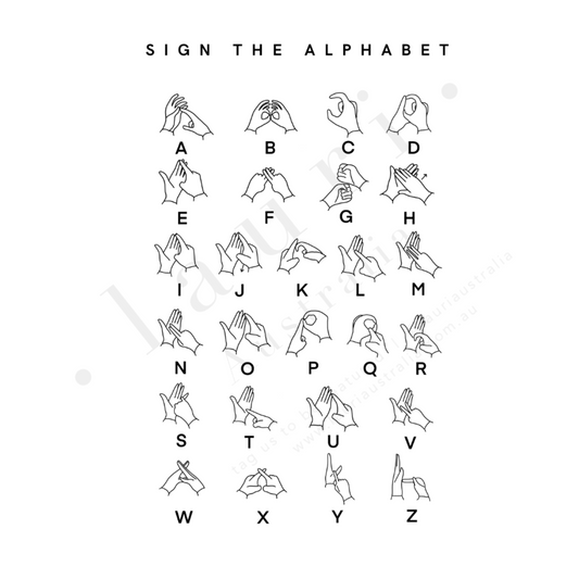 Auslan Sign Language Alphabet Poster (BSL) Black and White DIGITAL DOWNLOAD