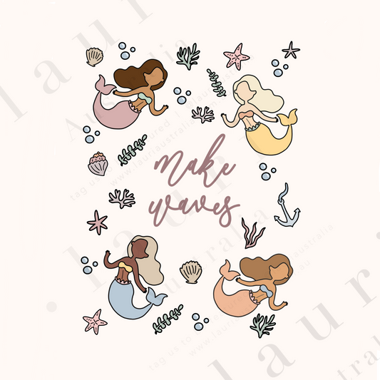 "Make Waves" Mermaid Poster for Kids Calming Corner - DIGITAL DOWNLOAD