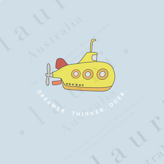 "Dreamer Thinker Doer" with Submarine Illustration Inspirational Poster for Kids Nursery and Classroom - DIGITAL DOWNLOAD