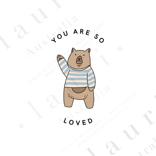 "You are so Loved" with Bear Illustration Inspirational Poster for Kids Nursery and Classroom - DIGITAL DOWNLOAD