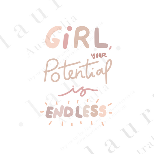 "Girl Your Potential is Endless" Inspirational Poster for Kids - DIGITAL DOWNLOAD Feminism Poster