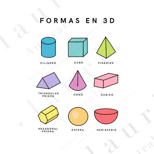 Spanish Bright 3D Shapes Poster - Póster Brillante de Figuras en 3D para Niños, Guardería y Aula DESCARGA DIGITAL