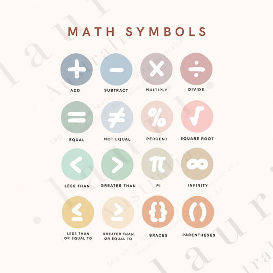 Boho Math Symbols Poster for Nursery and Classroom DIGITAL DOWNLOAD
