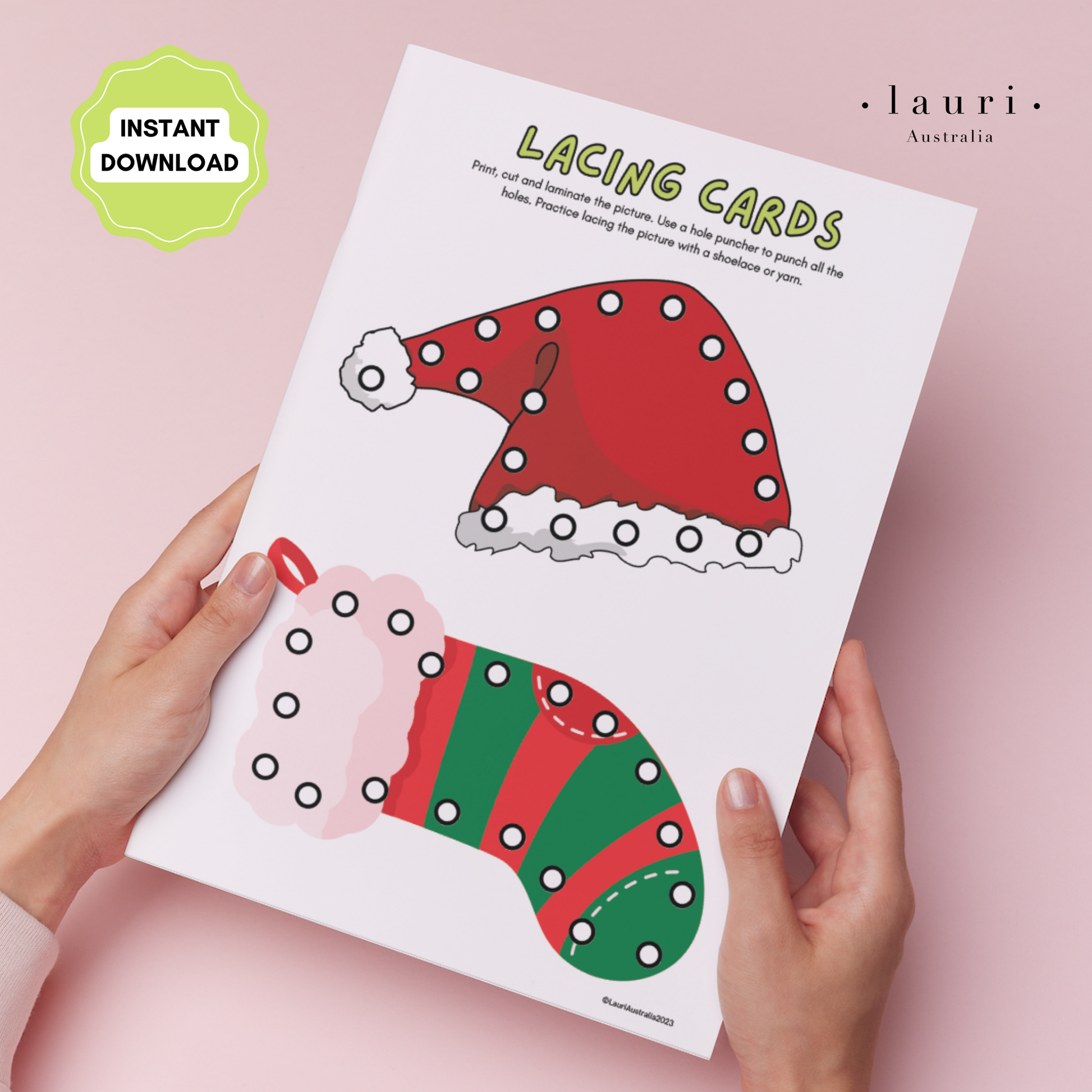 Print at home Christmas Lacing Cards Activity for Kids DIY Advent Calendar to fill your DIY Christmas Advent Calendar. Perfect to use with your Vegan Leather Countdown Calendar from Lauri Australia, which is available in Ivory and Taupe.