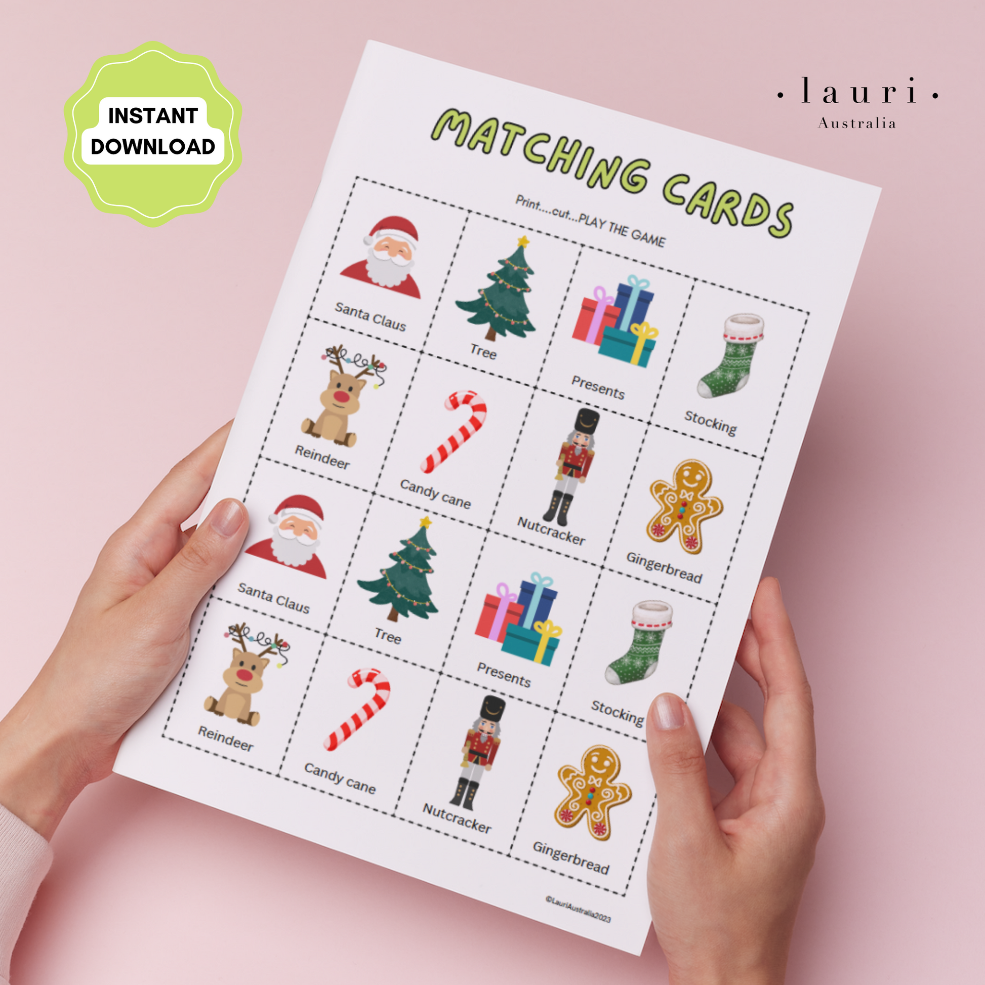 Print at home Christmas Matching Cards Activity for Kids DIY Advent Calendar to fill your DIY Christmas Advent Calendar. Perfect to use with your Vegan Leather Countdown Calendar from Lauri Australia, which is available in Ivory and Taupe.