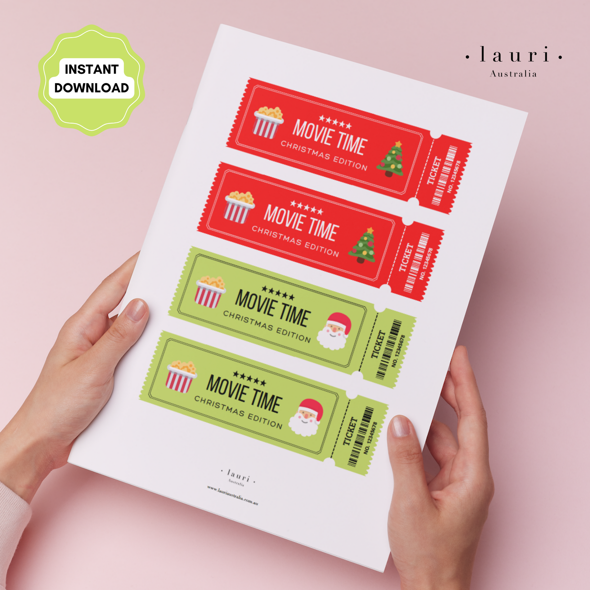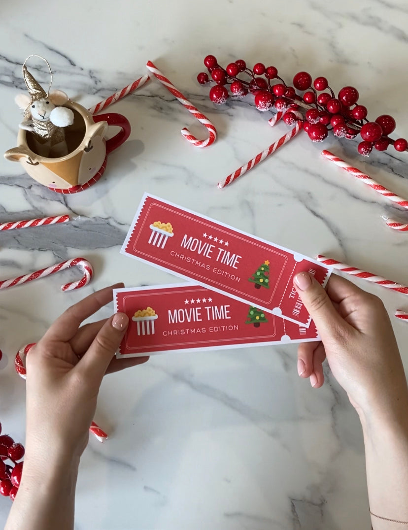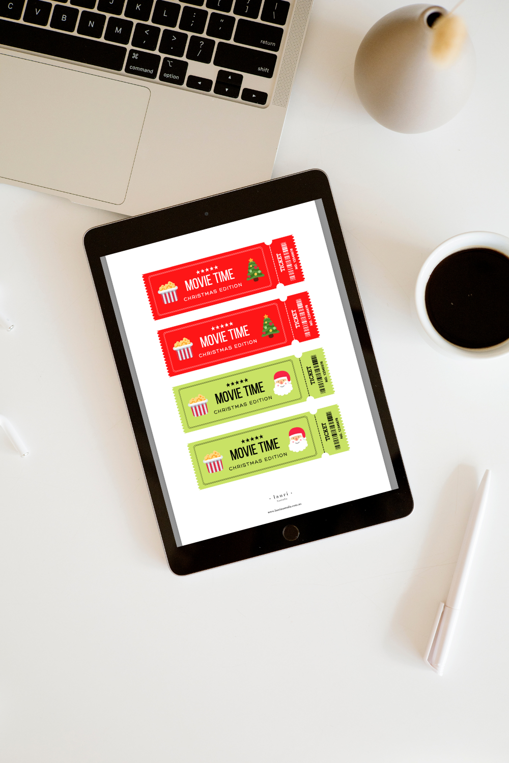 Print at home Christmas themed pretend movie tickets to fill your DIY Christmas Advent Calendar. Perfect to use with your Vegan Leather Countdown Calendar from Lauri Australia, which is available in Ivory and Taupe.