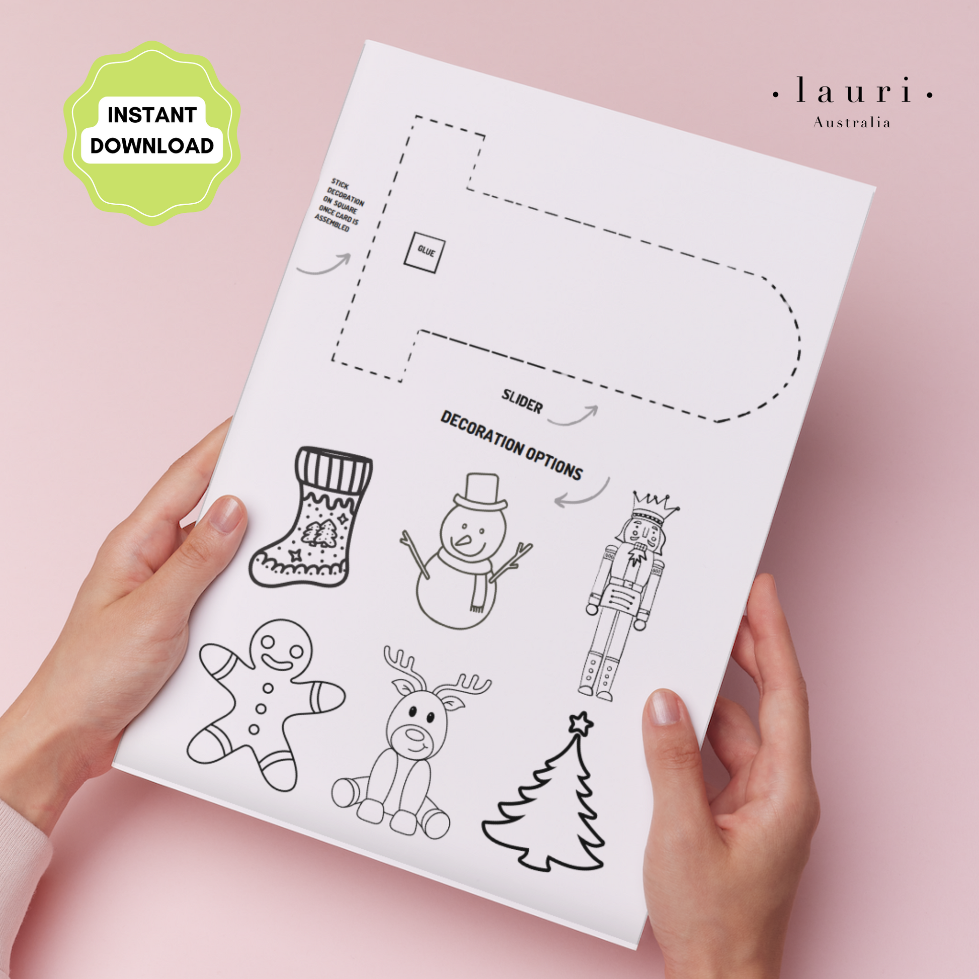 Print at home DIY Sliding Card Activity for Kids DIY Advent Calendar to fill your DIY Christmas Advent Calendar. Perfect to use with your Vegan Leather Countdown Calendar from Lauri Australia, which is available in Ivory and Taupe.
