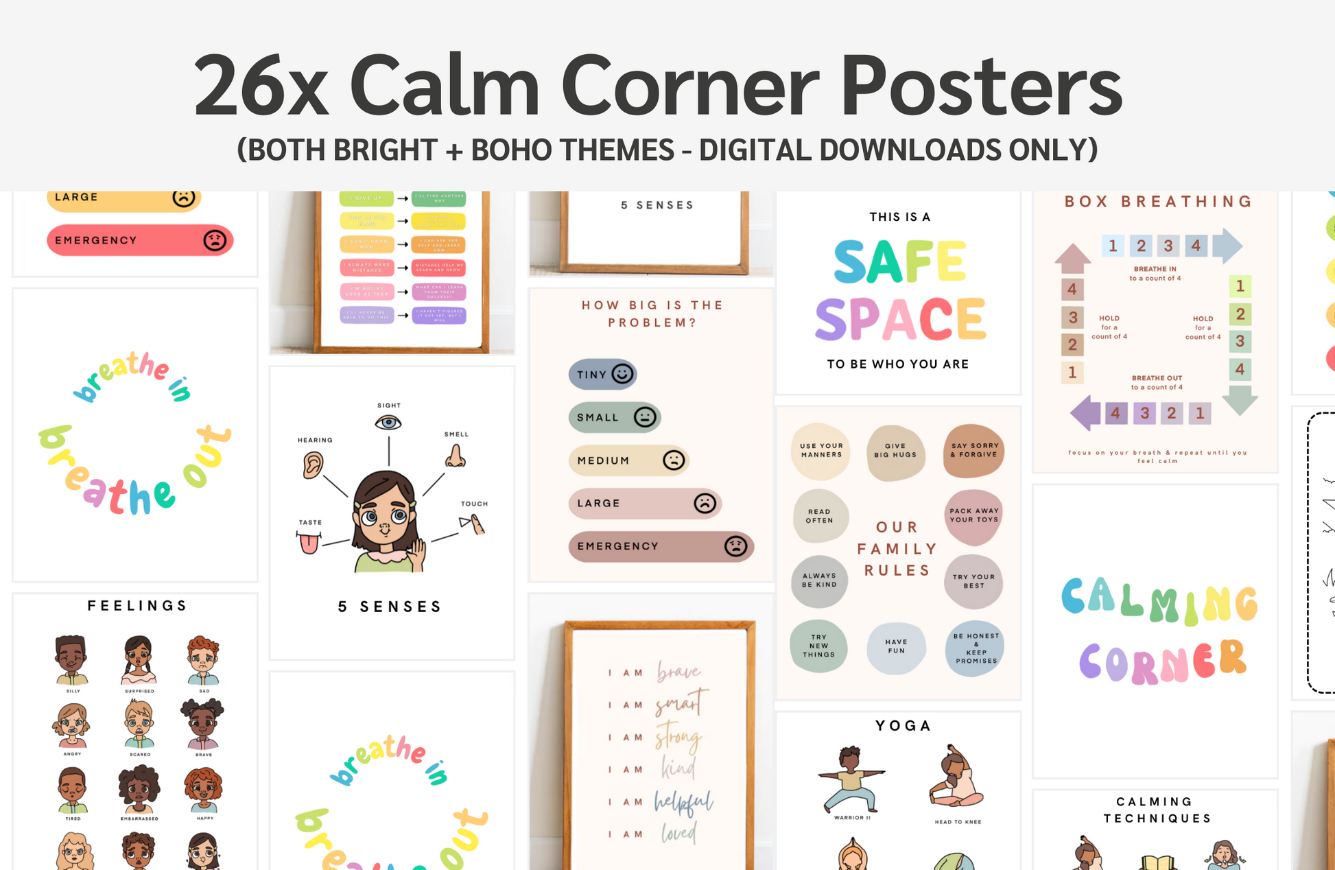 - 26x Calming Corner Poster Digital Downloads (includes both Boho and Bright Colours Themes - listed below)