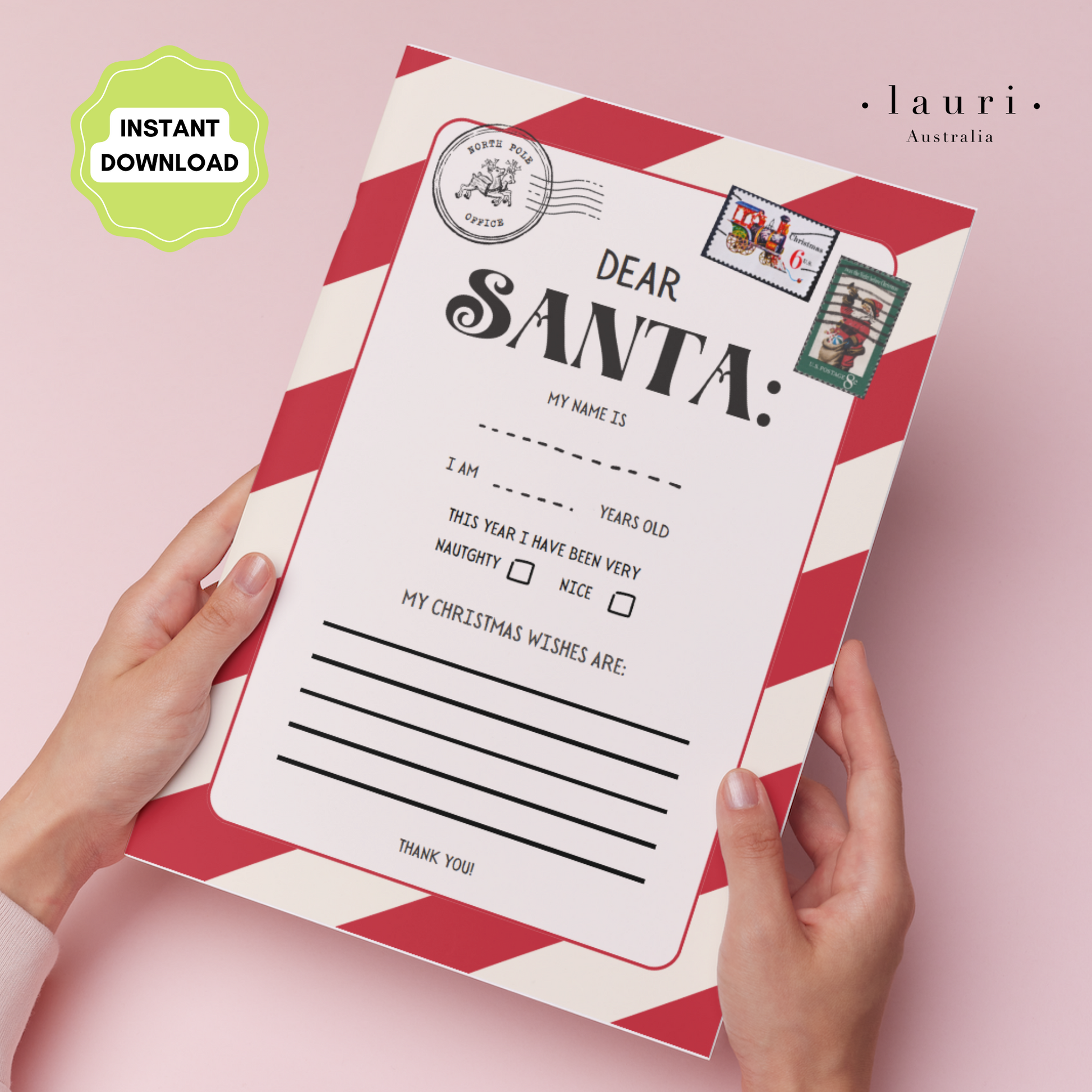 Print at homeLetter to Santa for Kids DIY Advent Calendar to fill your DIY Christmas Advent Calendar. Perfect to use with your Vegan Leather Countdown Calendar from Lauri Australia, which is available in Ivory and Taupe.