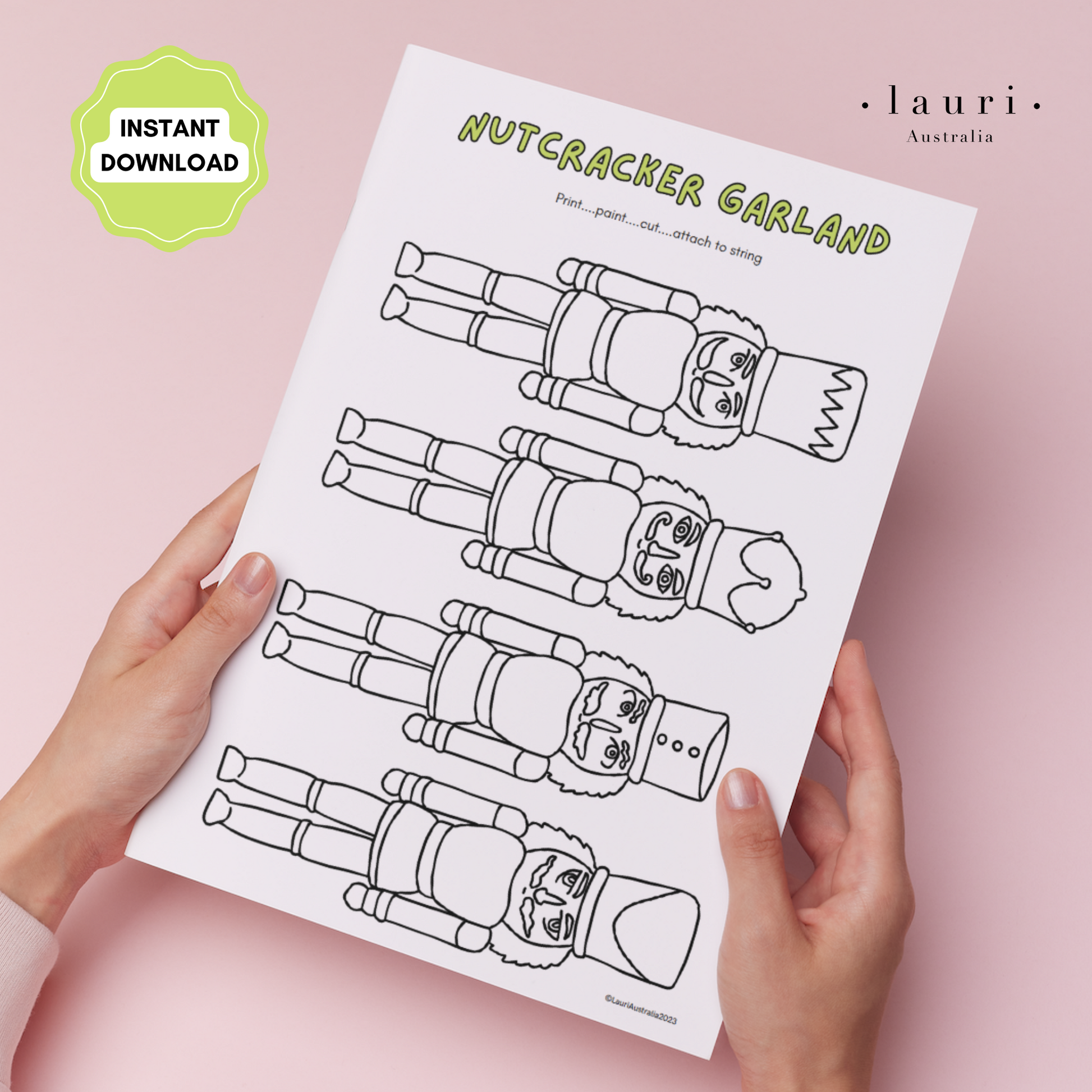 Print at home Nutcracker Garland for Kids DIY Advent Calendar to fill your DIY Christmas Advent Calendar. Perfect to use with your Vegan Leather Countdown Calendar from Lauri Australia, which is available in Ivory and Taupe.