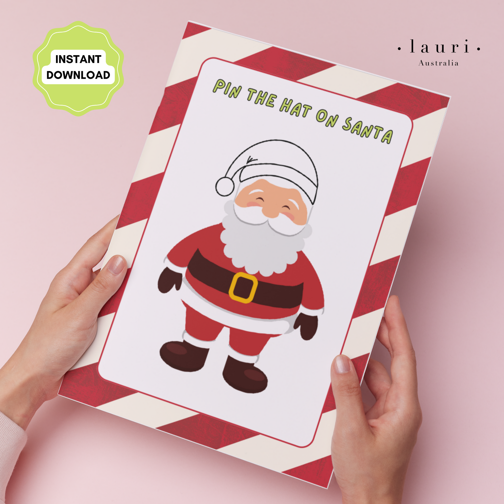 Print at home Christmas "Pin the Hat on Santa" Activity or Kids DIY Advent Calendar to fill your DIY Christmas Advent Calendar. Perfect to use with your Vegan Leather Countdown Calendar from Lauri Australia, which is available in Ivory and Taupe.