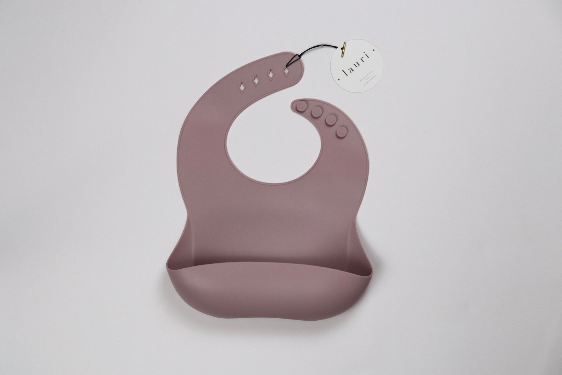 Silicone baby bib in Light Mauve, a soft purple colour.