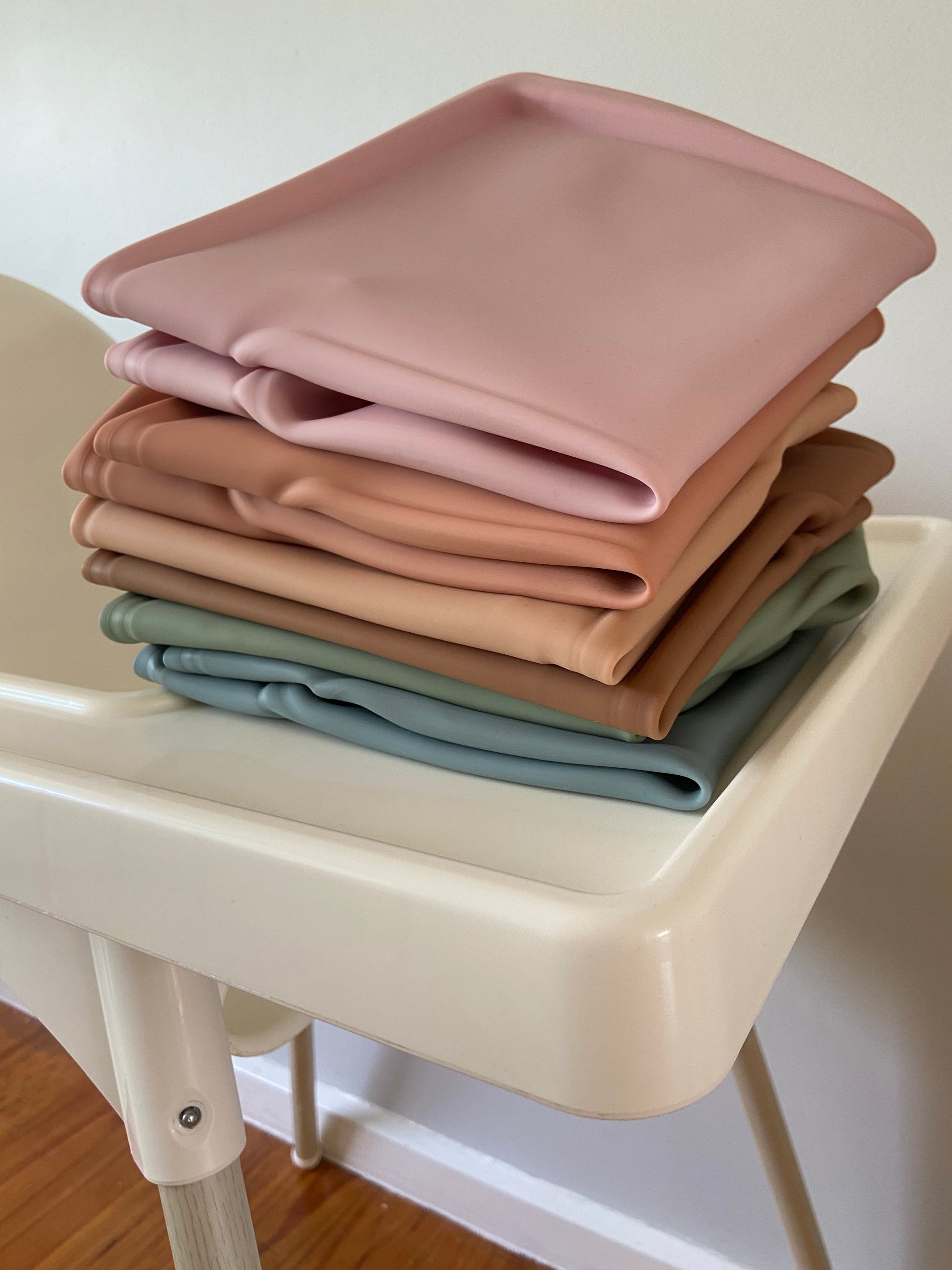 In addition to our wooden highchair footrests, silicone baby bibs and dinnerware, we say that easy clean up afforded by our silicone placemats makes the journey all the more enjoyable for parents! If you've ever tried removing a highchair tray and cleaning it in the sink (let-alone placing it in the dishwasher) you would know that it is not an easy feat. Our placemats cover the entire tray (avoiding the need to wash the tray) and can be placed in the dishwasher to clean after every use!