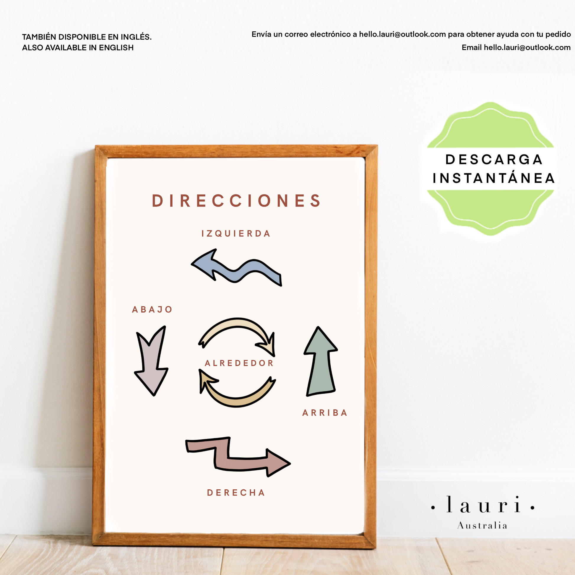 Spanish Boho Directions Poster for Kids - Cartel de direcciones Boho para guardería y aula de niños DESCARGA DIGITAL