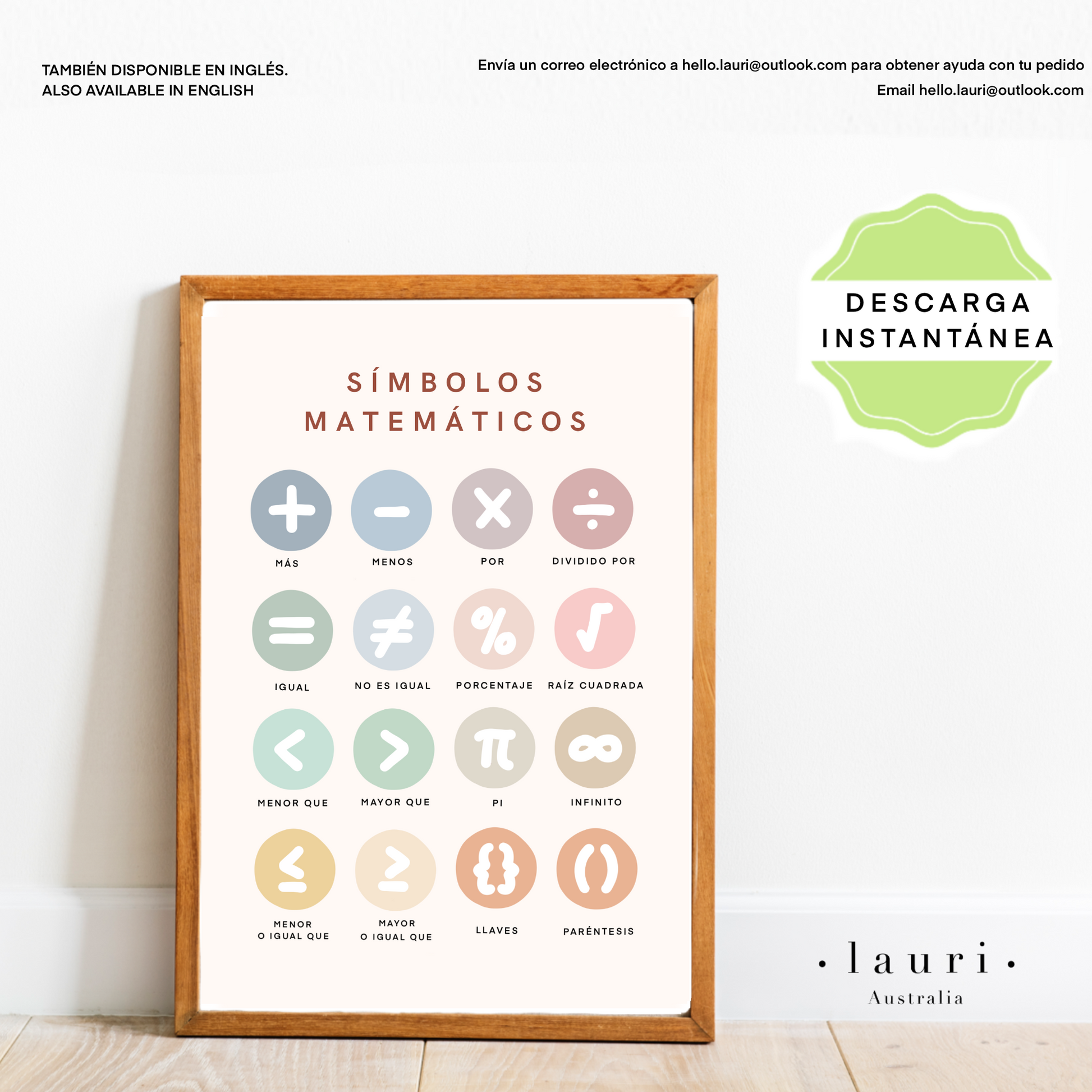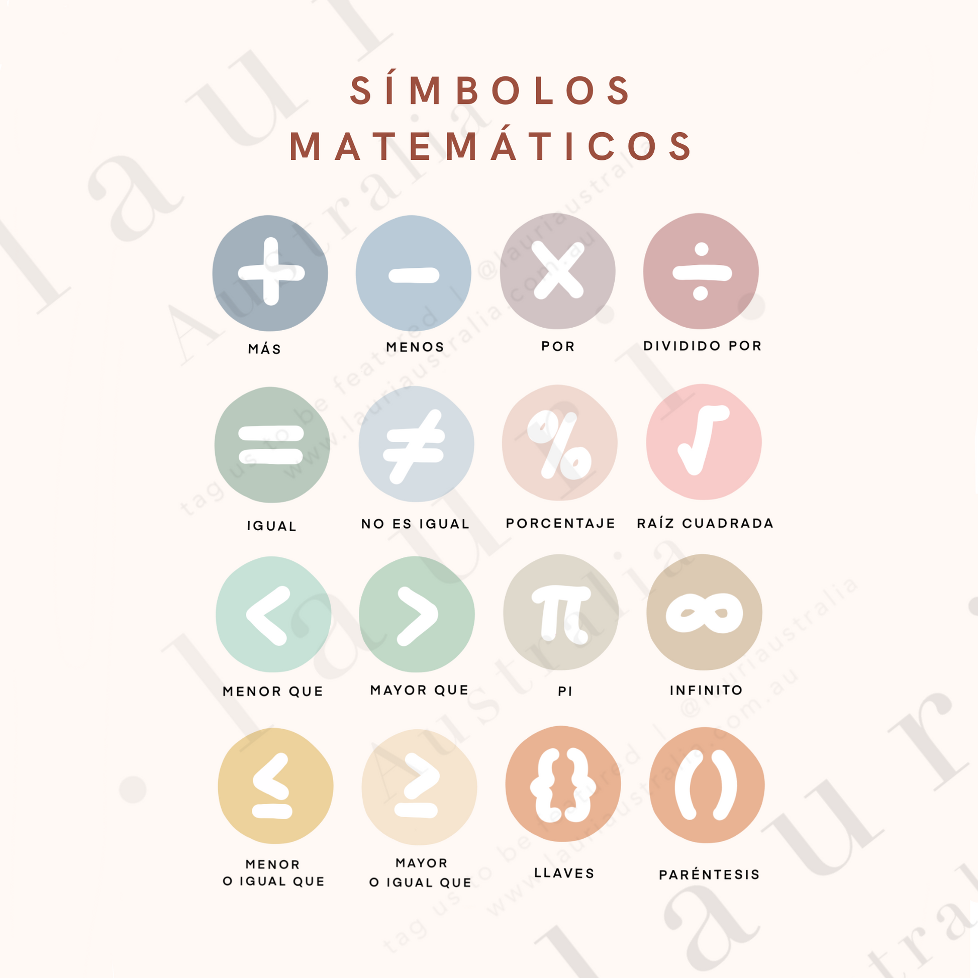 Spanish Boho Math Symbols Poster - Cartel de símbolos matemáticos boho para guardería y aula DESCARGA DIGITAL