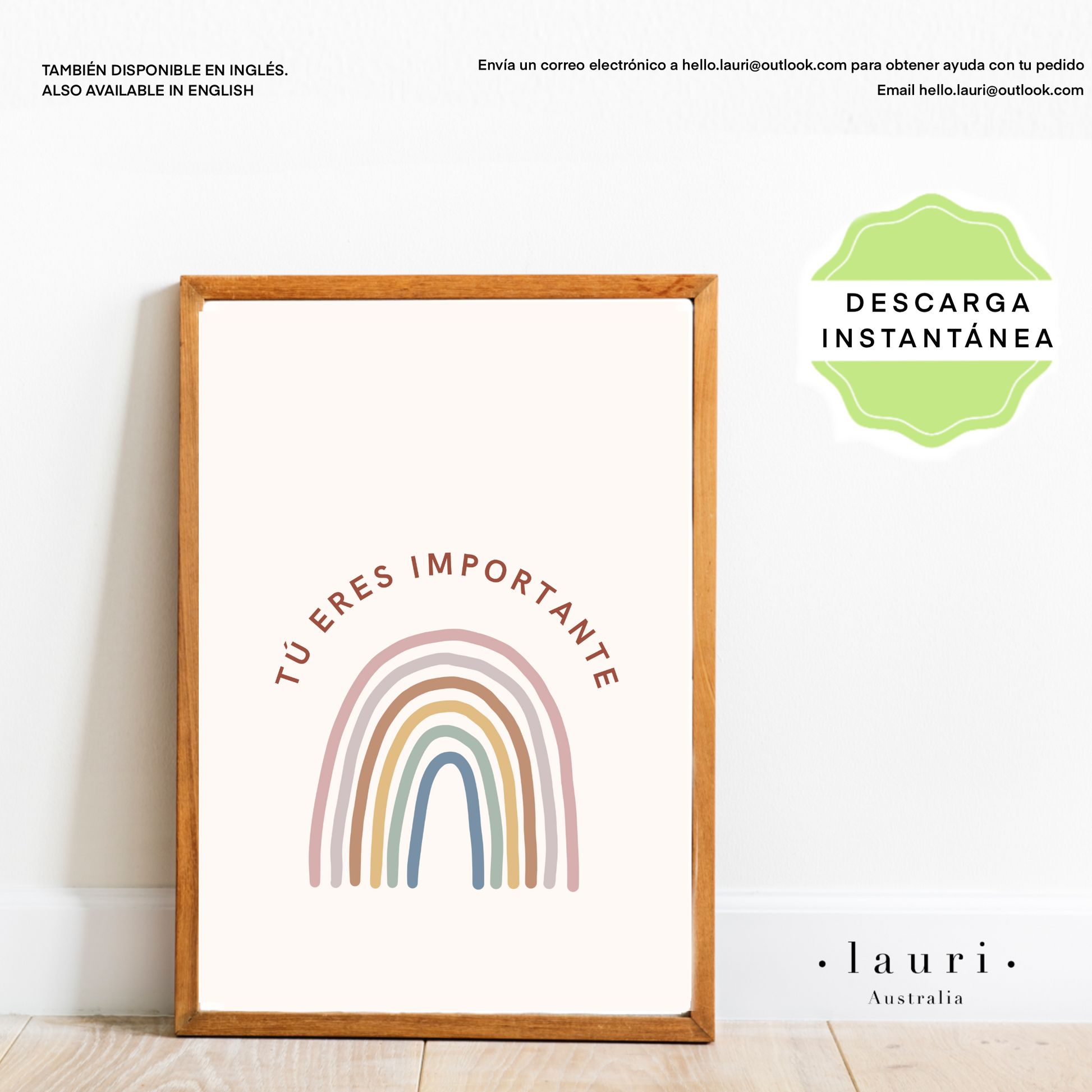 Spanish Boho Rainbow "You are important" Poster - Cartel de Boho Rainbow "Eres importante" para Kids Calming Corner - Autorregulación DESCARGA DIGITAL - Boho silenciado