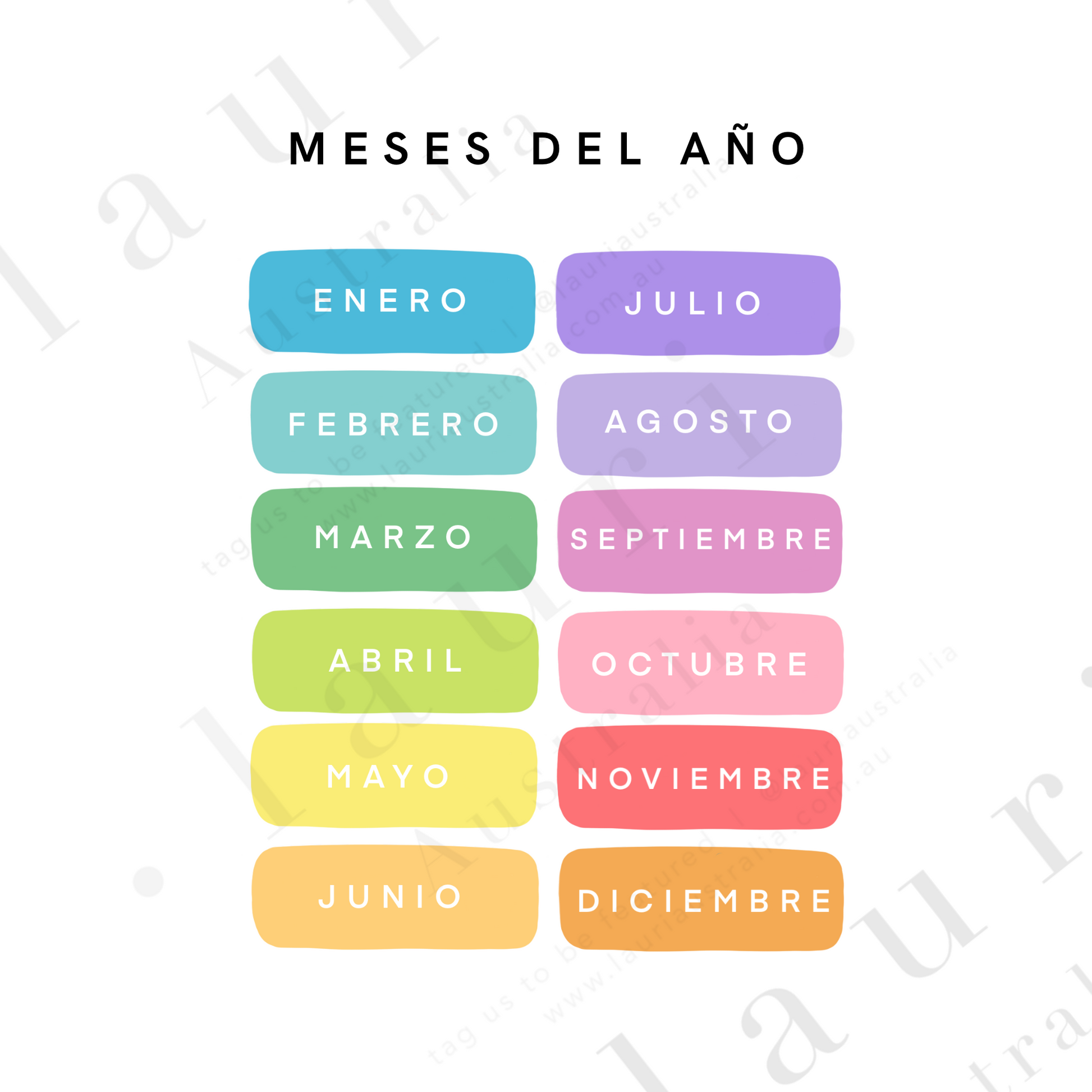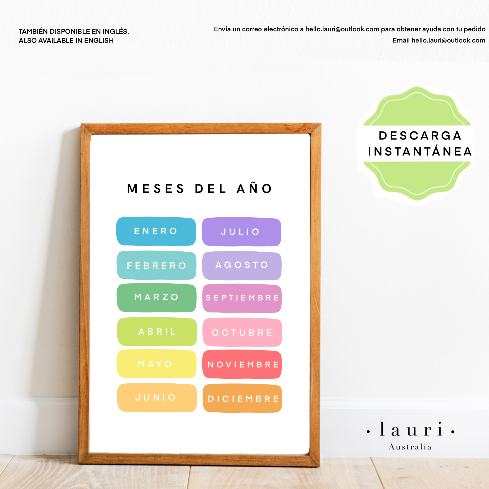 Spanish Bright Months of the Year Poster - Póster brillante de los meses del año para guardería y aula DESCARGA DIGITAL