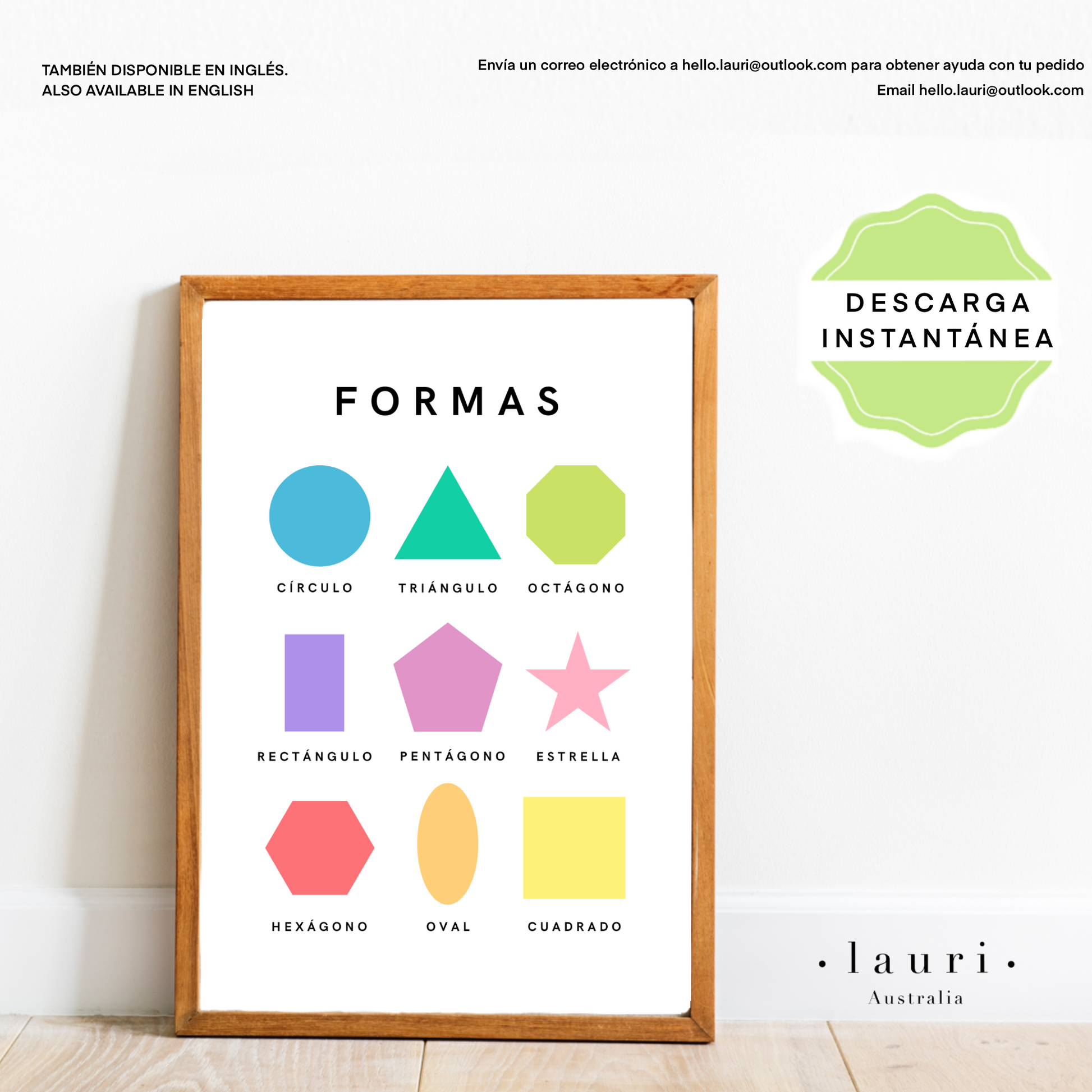 Spanish Bright Shapes Poster - Póster de Formas Brillantes para Guardería y Aula DESCARGA DIGITAL