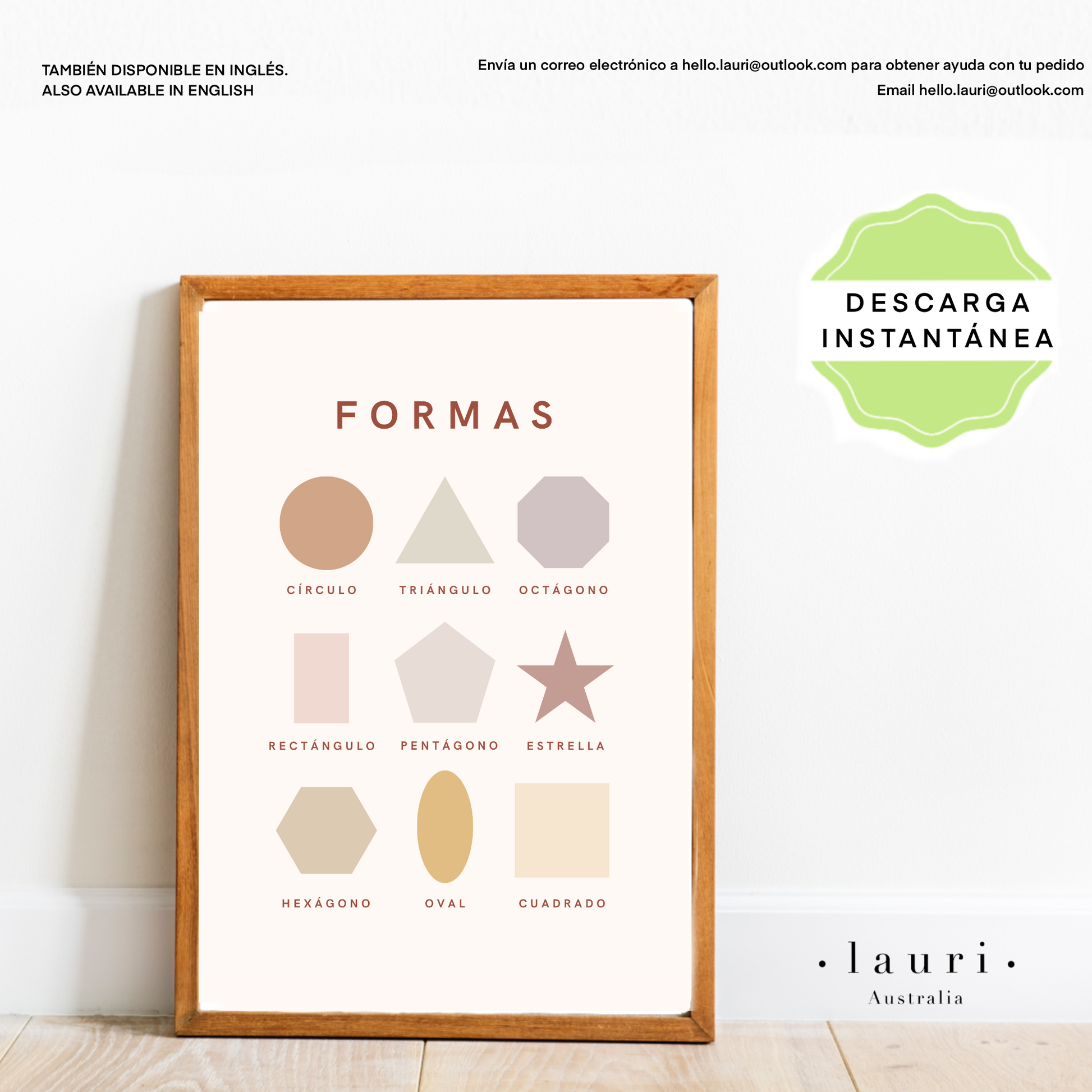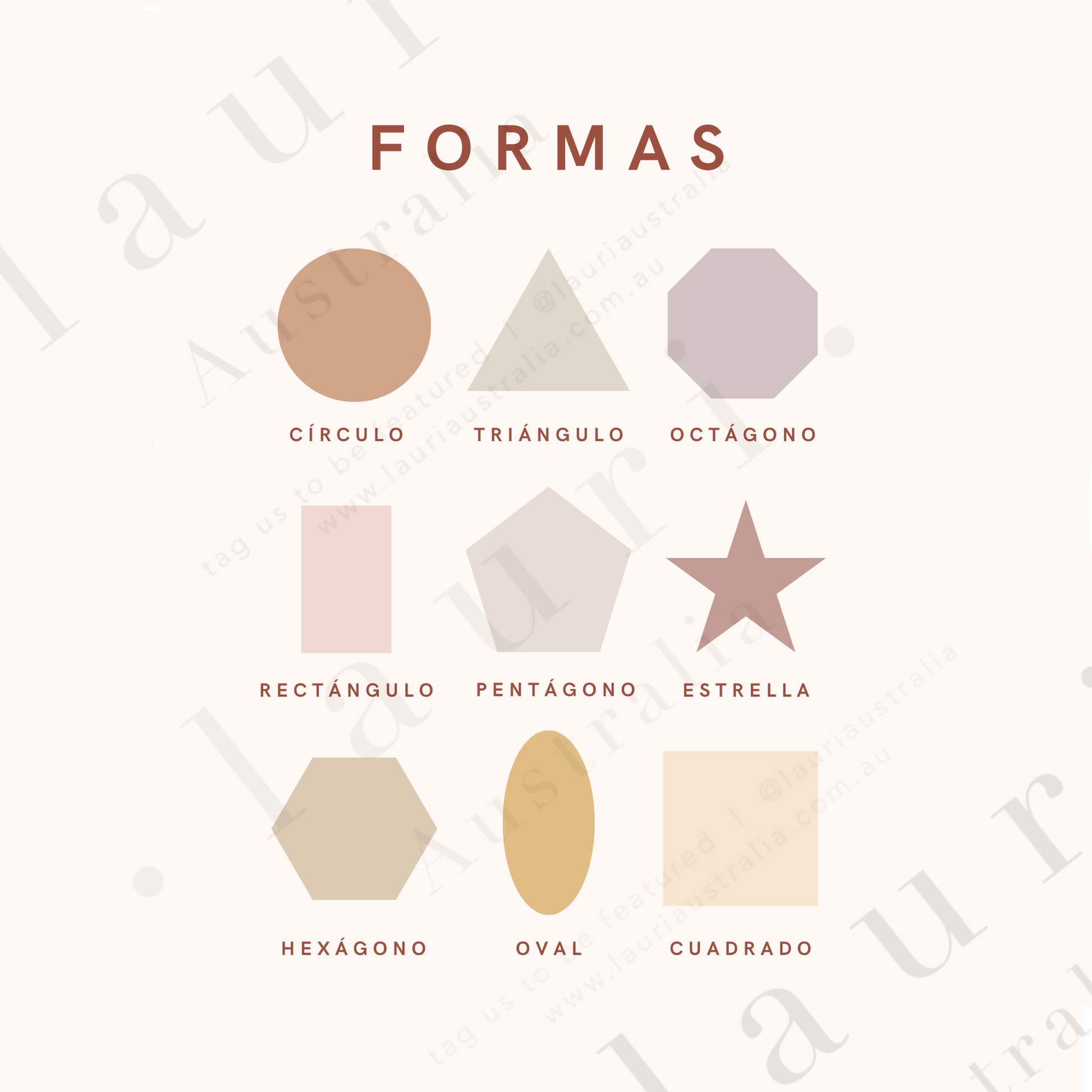 Spanish Muted Boho Shapes Poster - Cartel de Formas Boho Suaves para Guardería y Aula DESCARGA DIGITAL