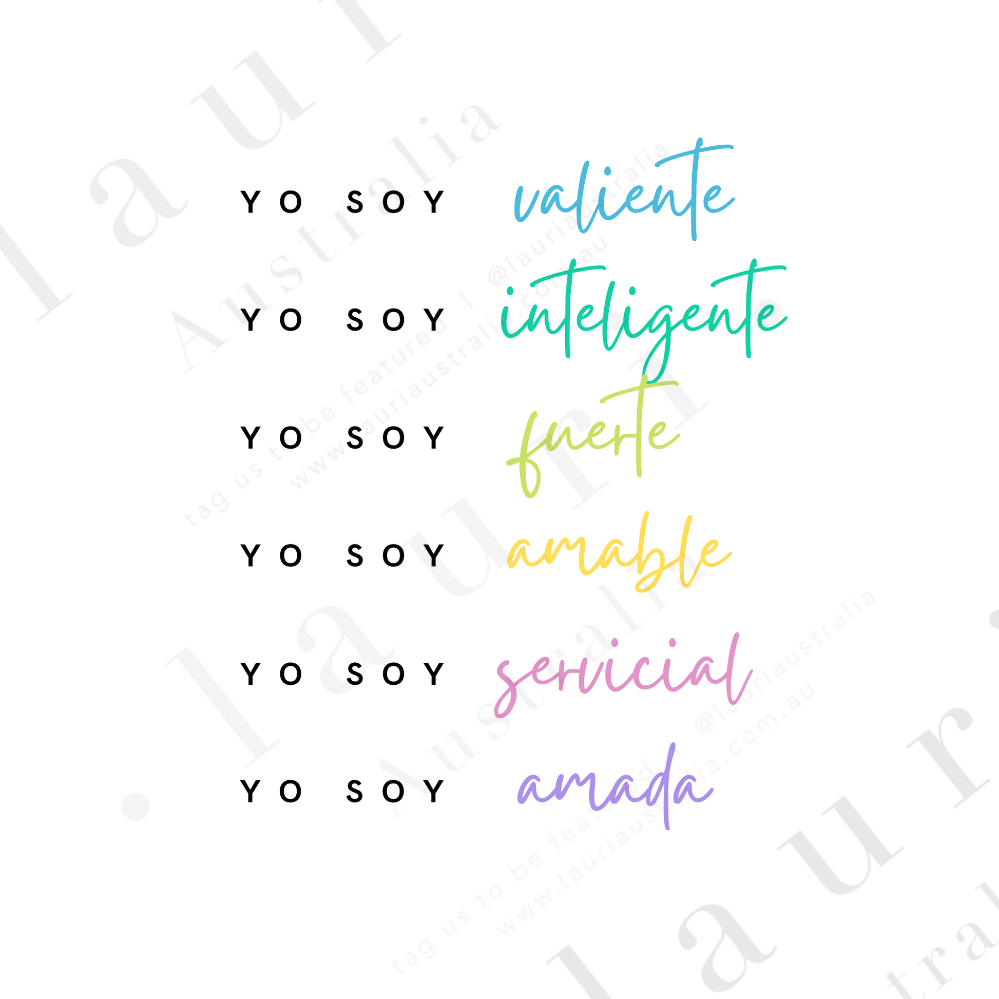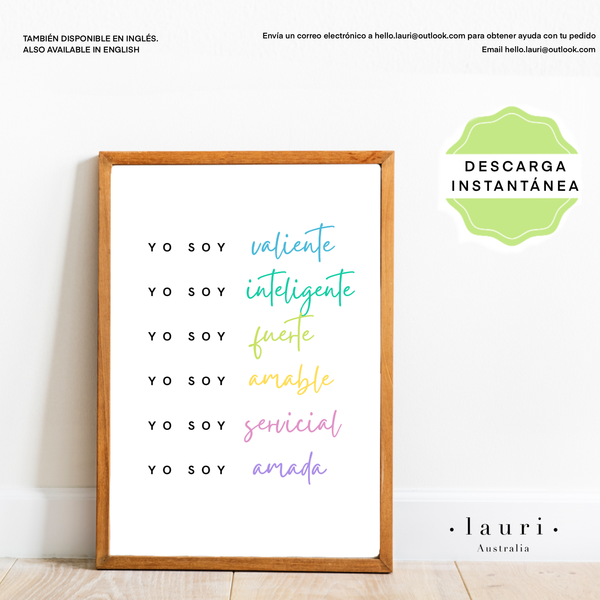 Spanish Positive Affirmations for Kids Poster - Póster de afirmaciones positivas para niños - Descarga digital imprimible - Brillante y colorido