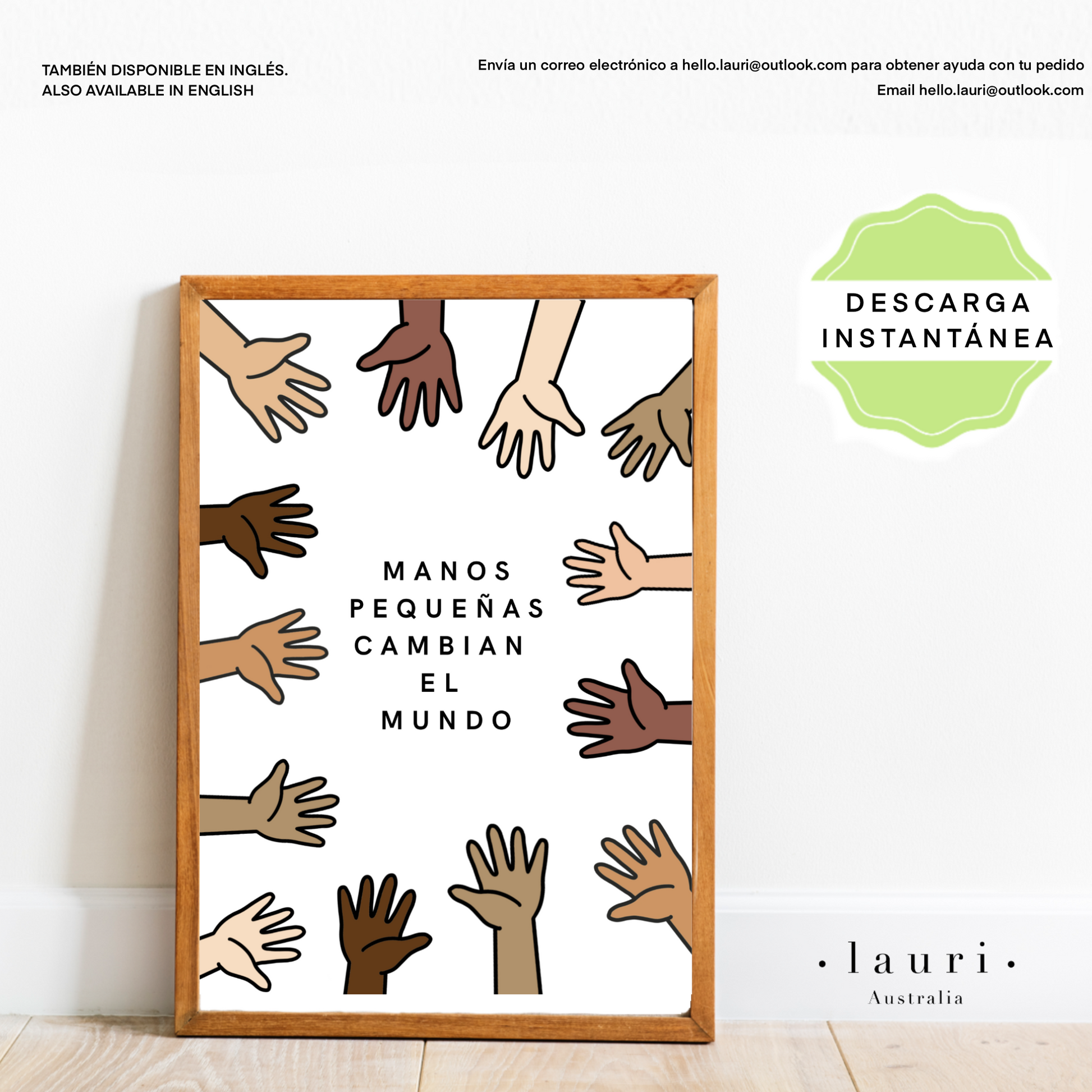 Spanish "Small Hands Change the World" Poster - Póster en español "Las Manos Pequeñas Cambian el Mundo" para la Esquina Tranquila de los Niños - Autorregulación DESCARGA DIGITAL