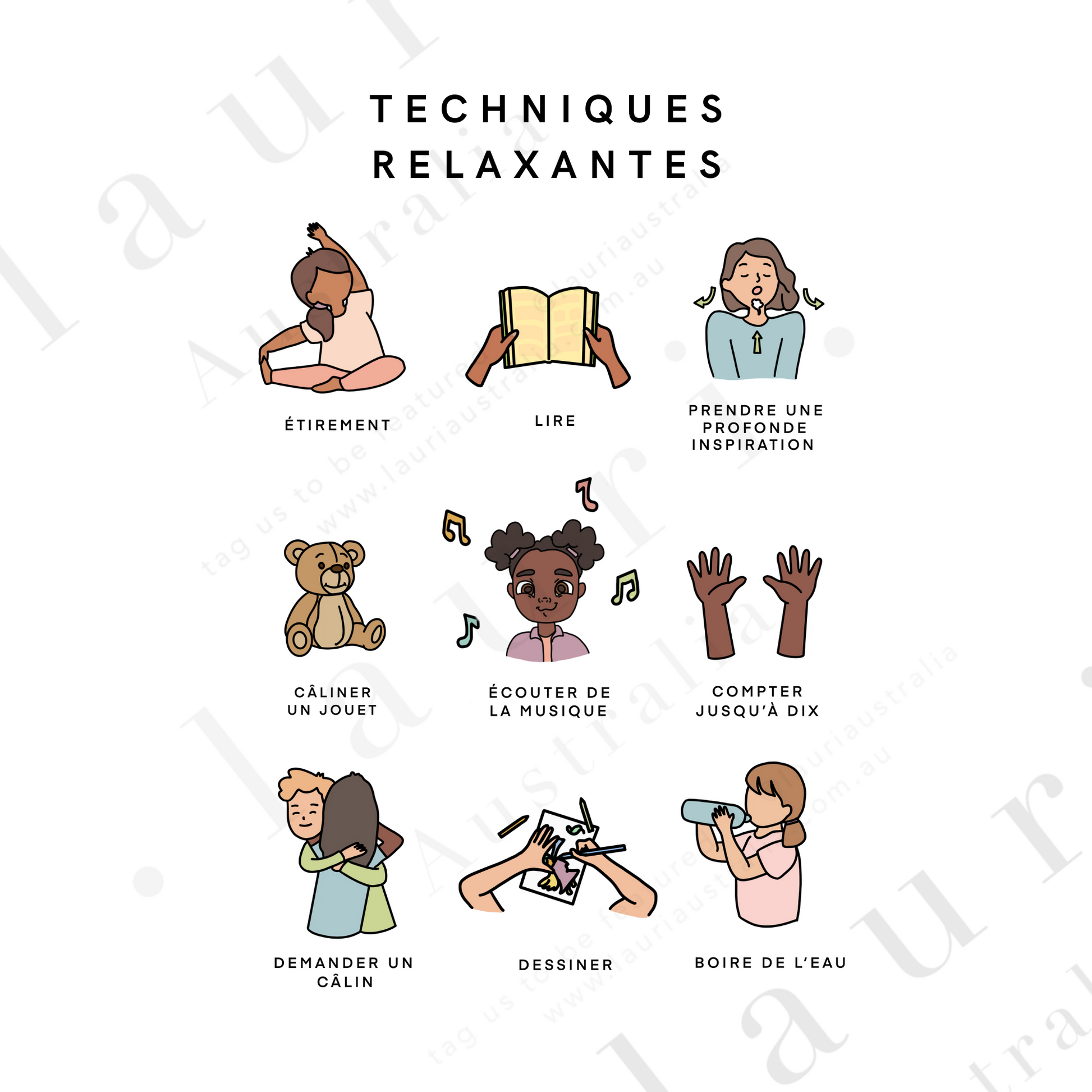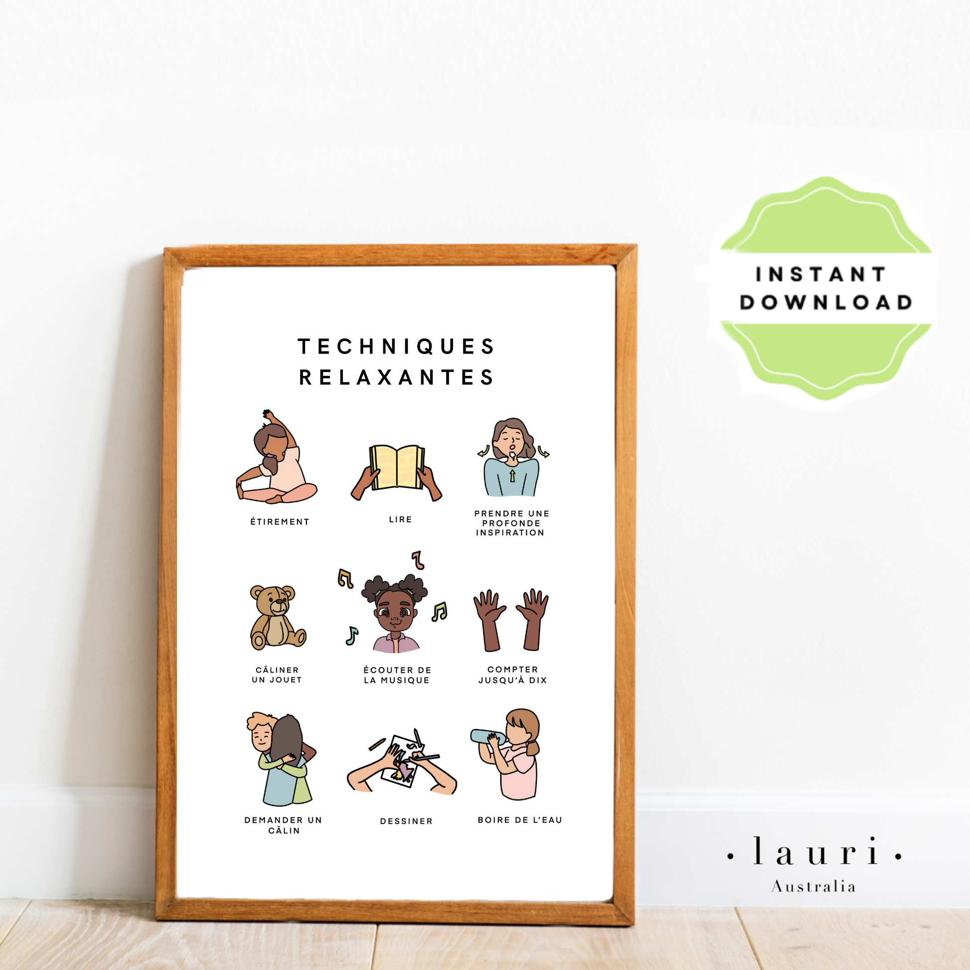 French Techniques relaxantes - French Calming Tenchninques Poster - Lauri Australia- DIGITAL DOWNLOAD Printable